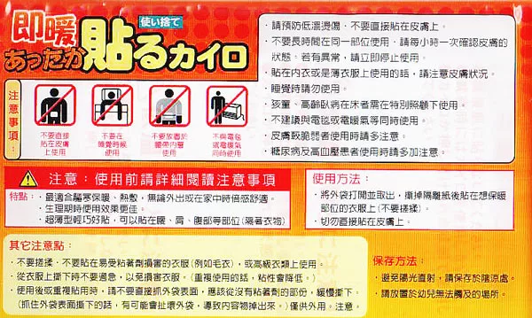 可貼式暖暖包,可貼在想保暖部位的衣服上,非常保暖,讓您對抗寒冷的冬天