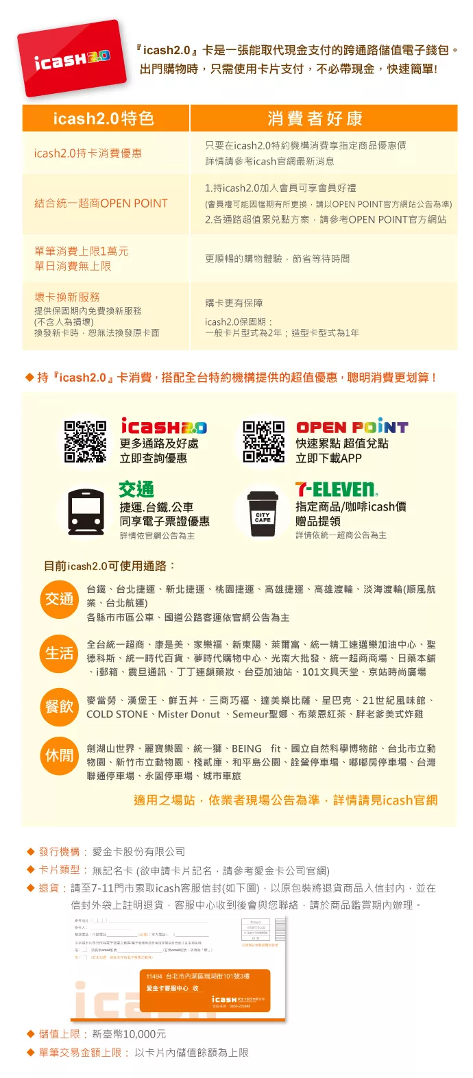 ※商品有拆封或使用,恕無法退貨。若有晶片感應問題,請洽詢愛金卡客服,電話:02-26576388 / 一卡通客服,電話:07-7912000 / 悠遊卡客服,電話:412-8880(手機及金馬地區請加02) 。