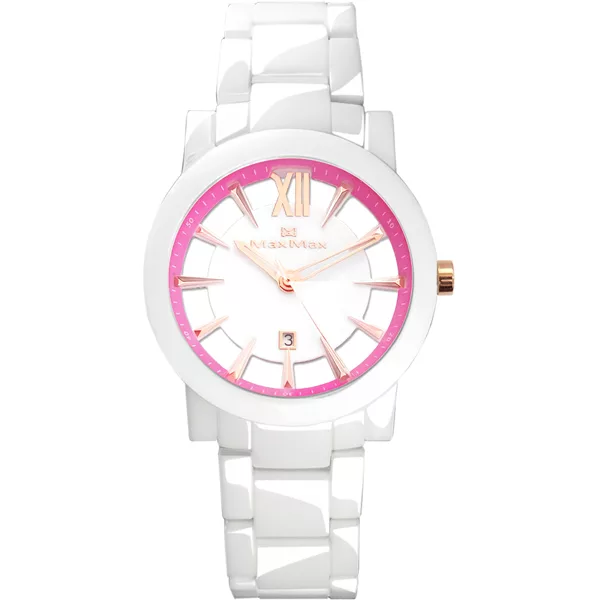 Max Max 初夏微醺時尚陶瓷腕錶-桃紅x白