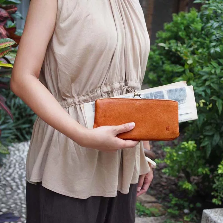 Kissora Tokyo|日本職人手工 三折一字口金牛皮短夾 橘色