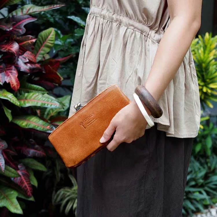 Kissora Tokyo|日本職人手工 三折一字口金牛皮短夾 駝色