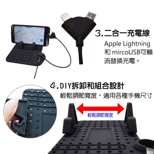 軟質塑材,不刮傷機身與愛車/DIY組合拆裝,適用各式機種/吸附性強,適應各種車型弧線