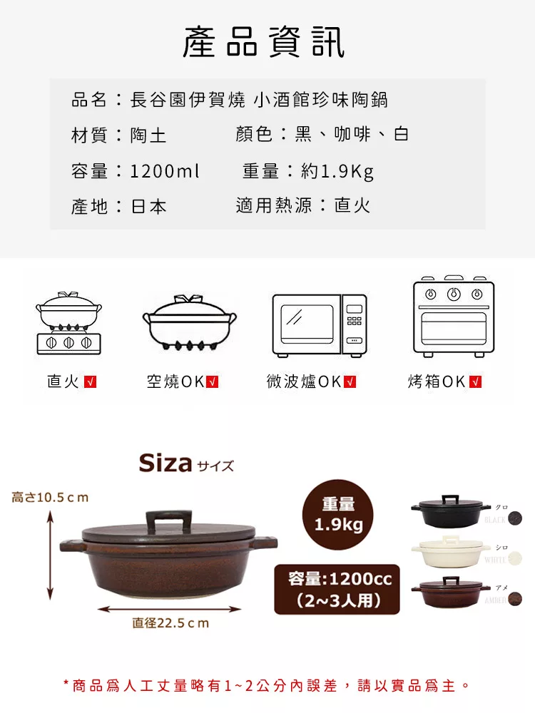 【日本利行】日本製萬古燒黑釉8號砂鍋/土鍋(2-3人)