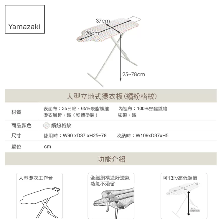 日本【YAMAZAKI】人型立地式燙衣板 (繽紛格紋)