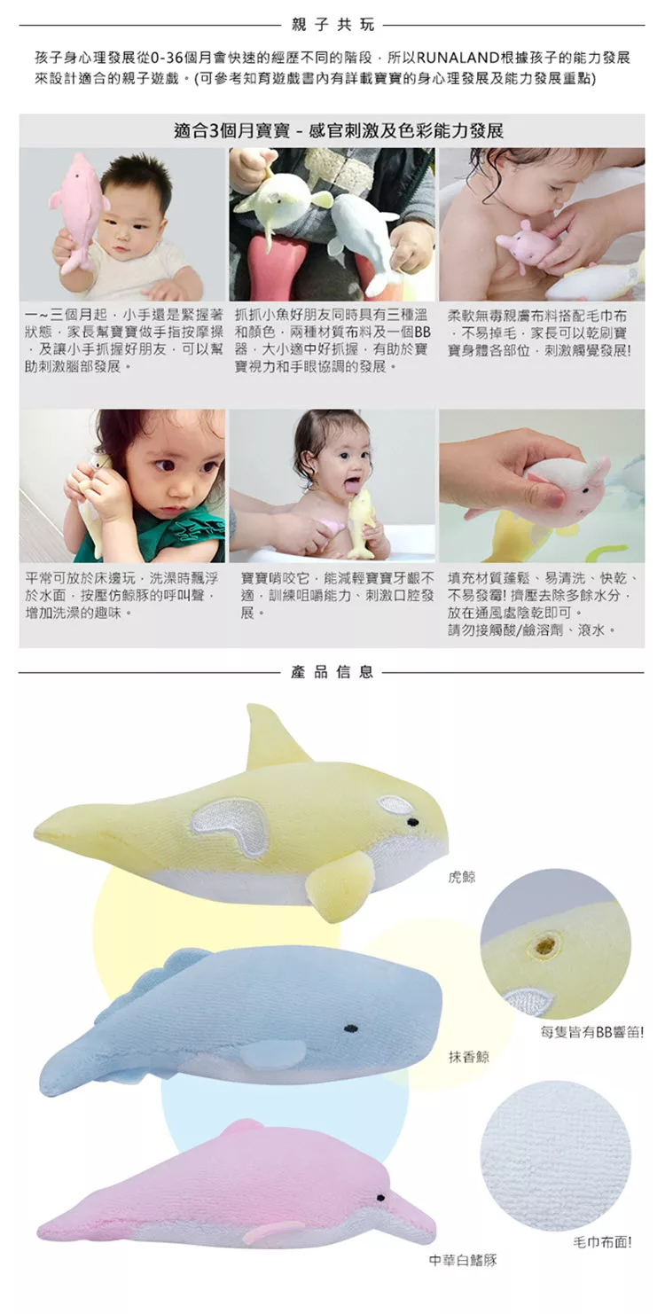 平常可以放在寶寶床邊讓他玩;洗澡時,好朋友飄浮於水面,按壓仿鯨豚叫聲,增加洗澡的樂趣。