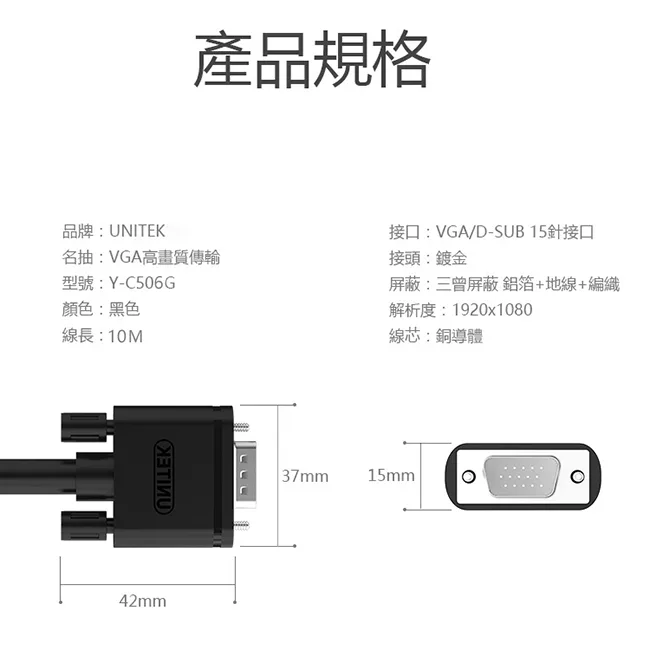 大dp轉vga 1.8米 高畫質轉接線