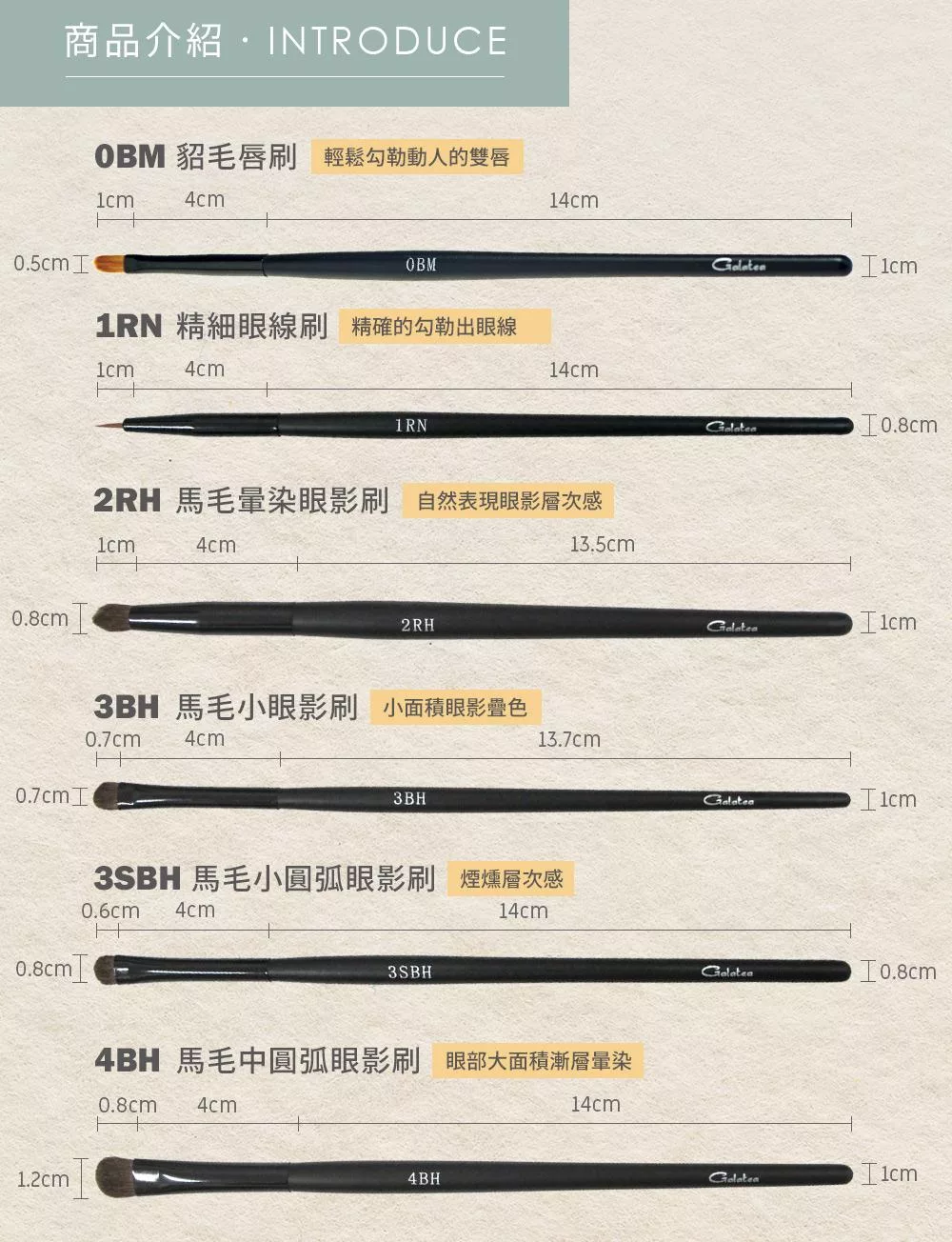 | 刷毛材質 | 山羊毛, 貂毛, 馬毛, 豬鬃, 纖維毛 |