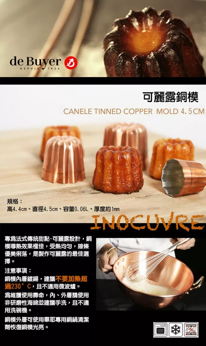法國【de Buyer】畢耶烘焙 頂級可麗露銅模4.5cm(3入1組)