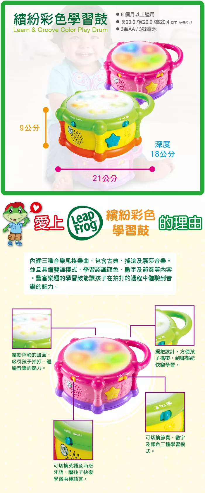 品名:美國【LeapFrog 跳跳蛙】繽紛彩色學習鼓(桃紅)