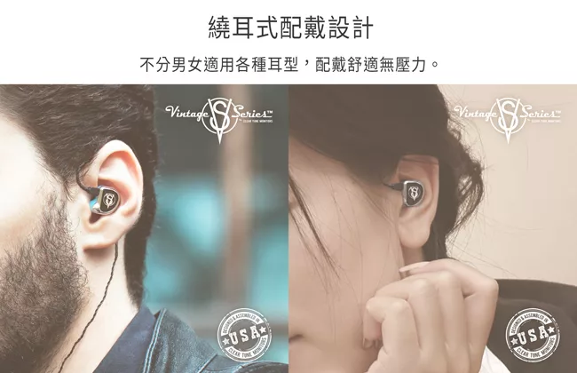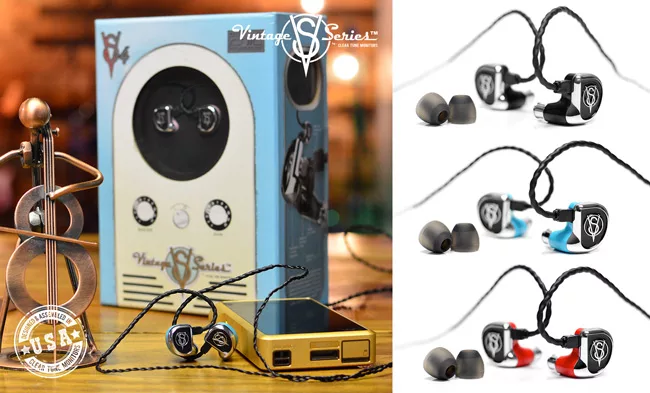 Vintage系列為美國客製化耳機品牌CTM所推出的Universal Fit入耳式耳機,在外型的設計靈感來自於50年代的美國房車,銀色電鍍邊框搭配三種鮮明顏色做區分,強調復古獨特的風格走向。並採用繞耳式設計不分性別可適用各種耳型,配戴舒適無壓力。VS-4為Vintage系列中最高階款,內部結構採用美國Knowles四動鐵單元驅動配置(高音x1、中音x2及低音x1),出色的低失真特性在音質方面更顯著提升細膩度,聲音細節表現更豐富,適用對音質細節有高要求的音樂玩家。