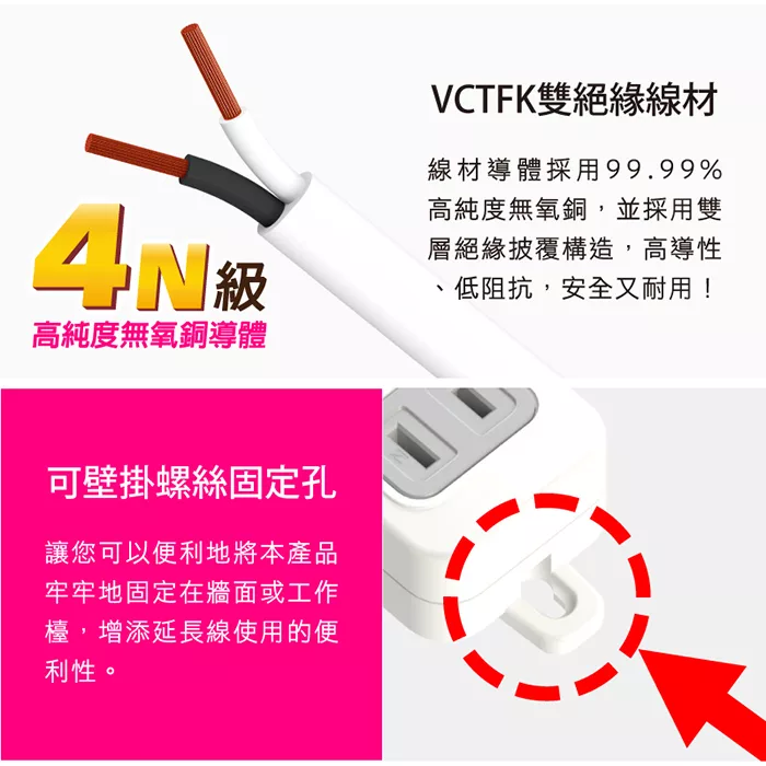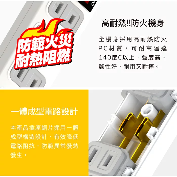 【DIKE】安全加強型一切四座防火災抗雷擊延長線270cm (DAH549WT)