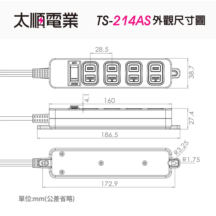 Tyson太順電業 TS-244AS 2孔4切4座延長線(轉向插頭)-4.5米