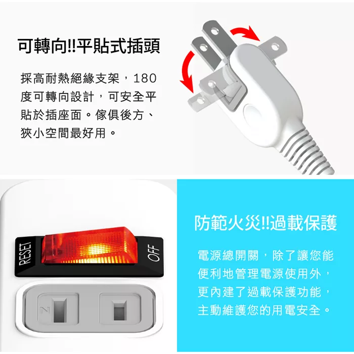 【太星電工】 一開四插延長線/2P 15A 6尺 總開關 過載保護 OEA41206 白色