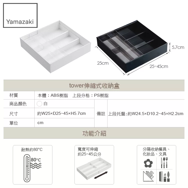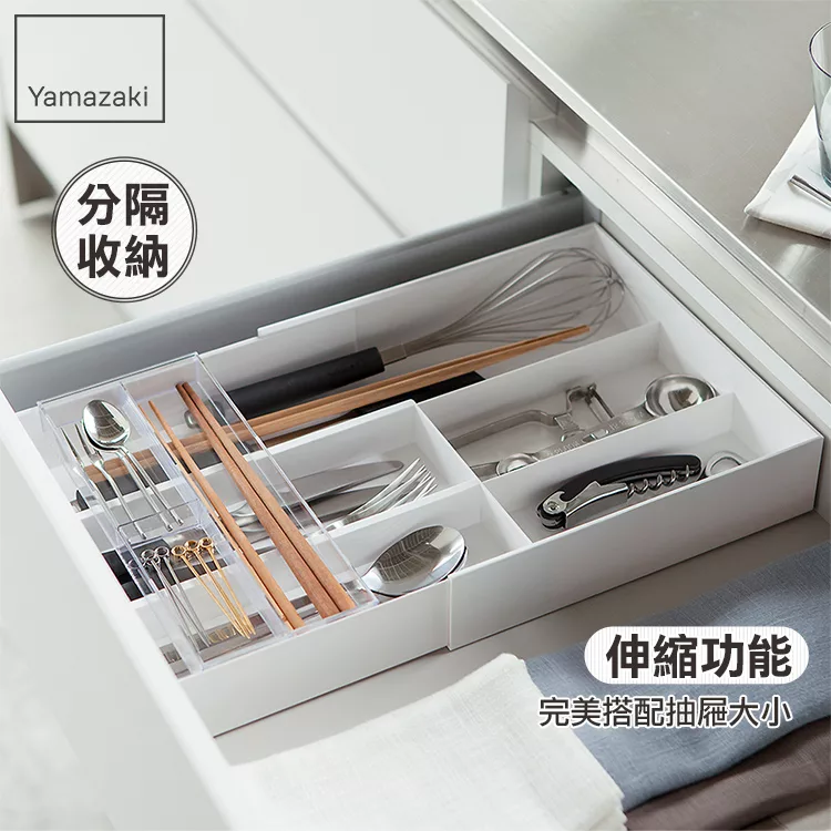 伸縮功能完美搭配抽屜大小,不侷限任何空間。簡簡單單分隔收納、整齊不扣分!