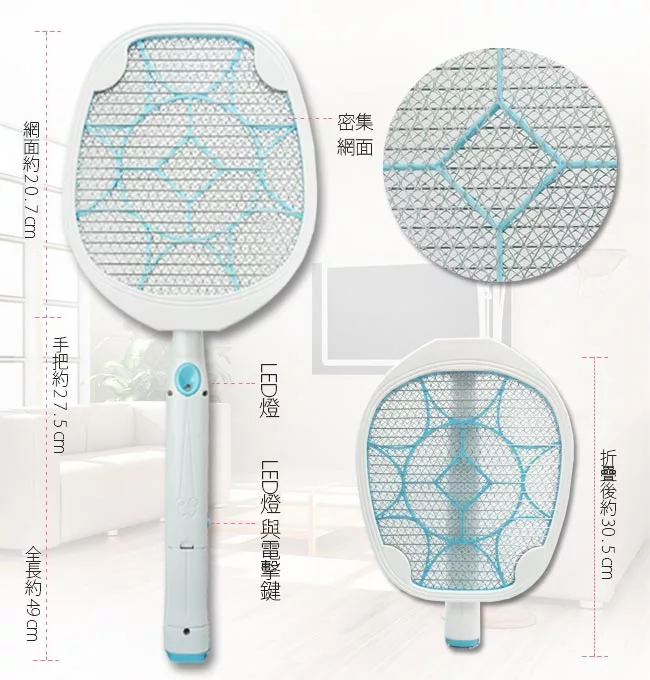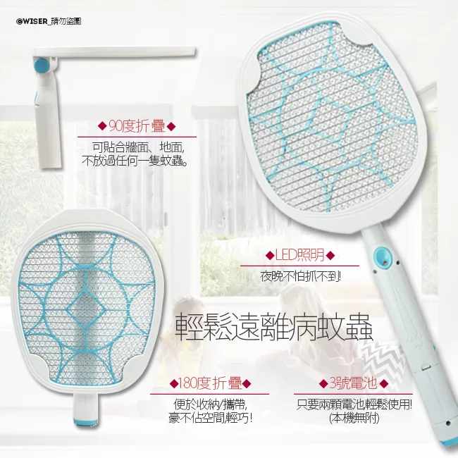 aibo 一拍兩用 懸掛折疊旋轉 電蚊拍/捕蚊燈 黑色