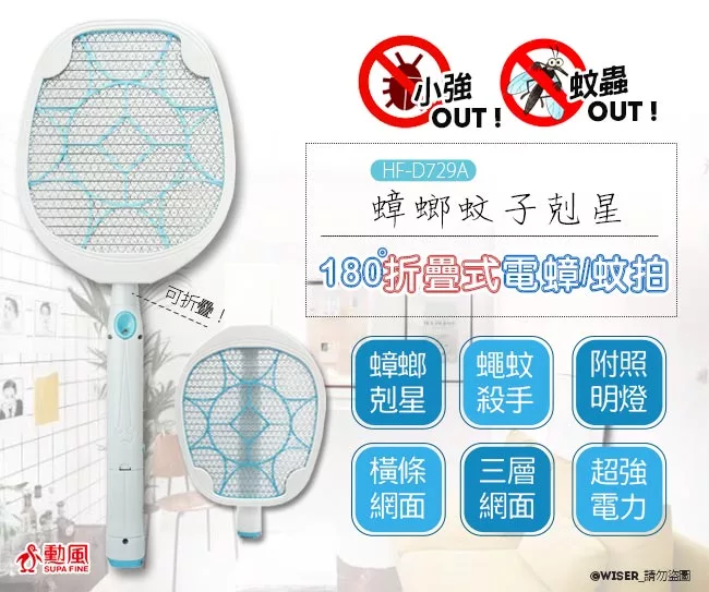 日象大器旋風充電式電蚊拍 ZOM-3800