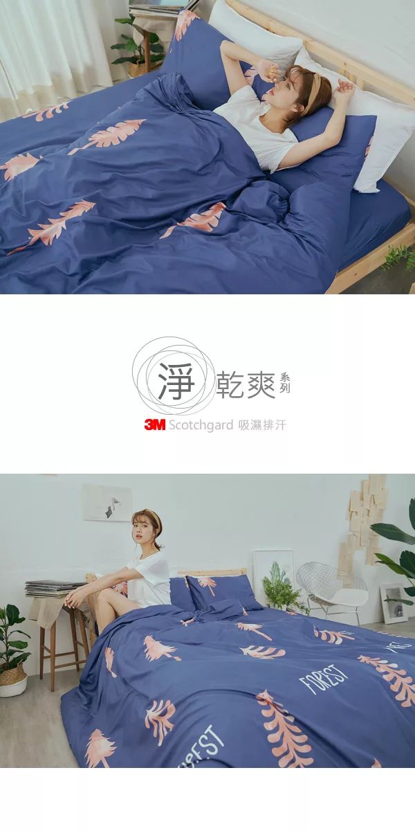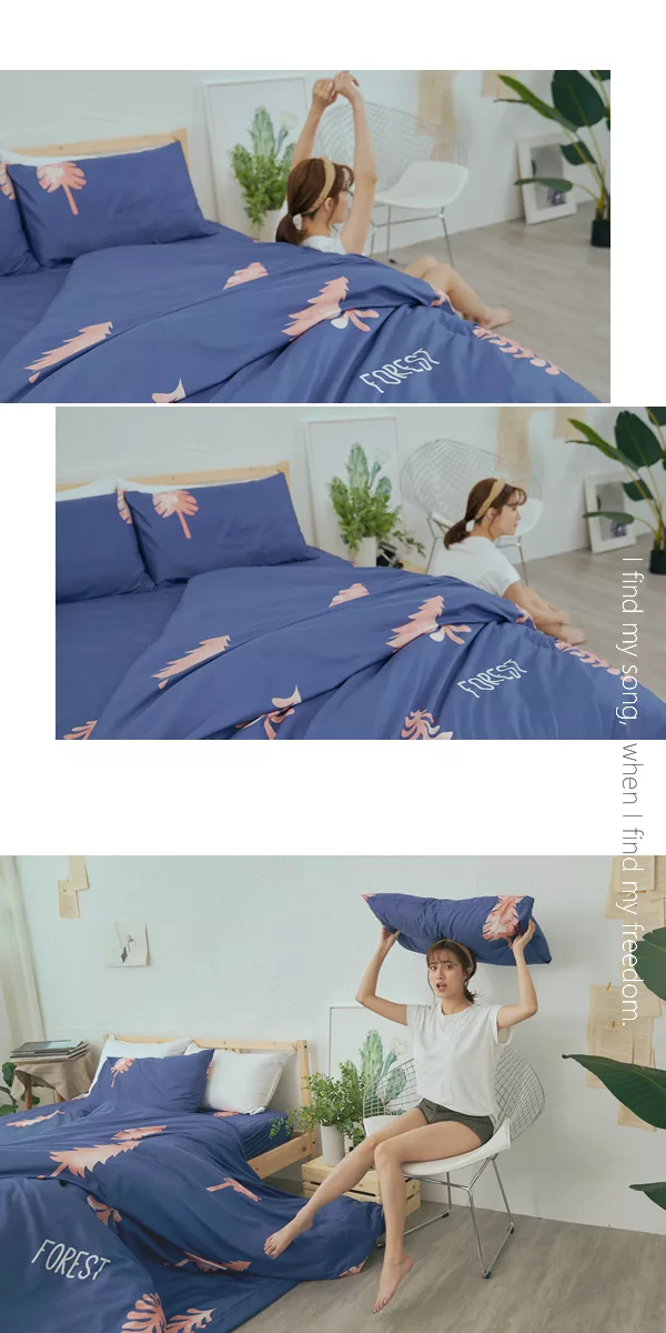 《DUYAN 竹漾》台灣製 芬蘭撞色設計-雙人加大床包三件組- 愛麗絲藍