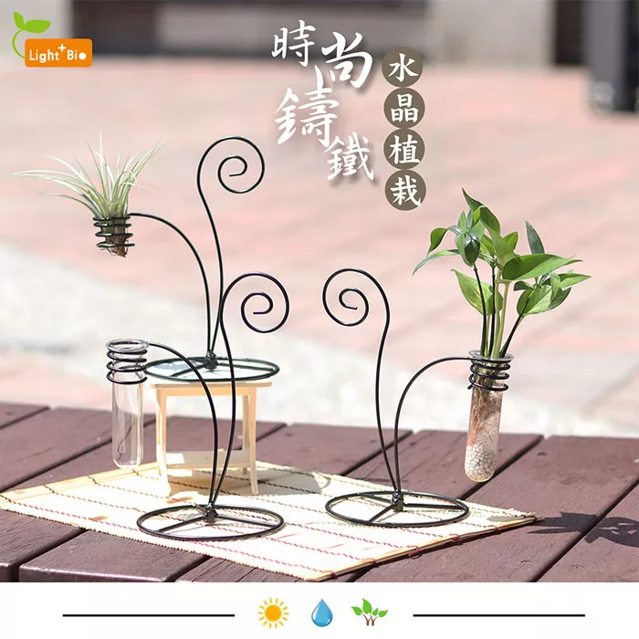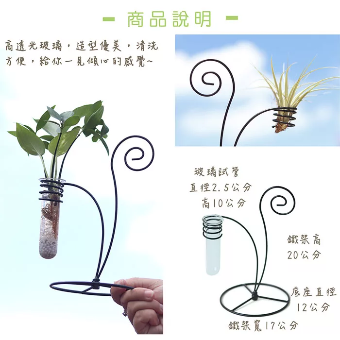 內容物:鑄鐵架*1、玻璃試管*1、栽培介質、植物*1(植物品種隨機出貨,請詳閱商品內文)