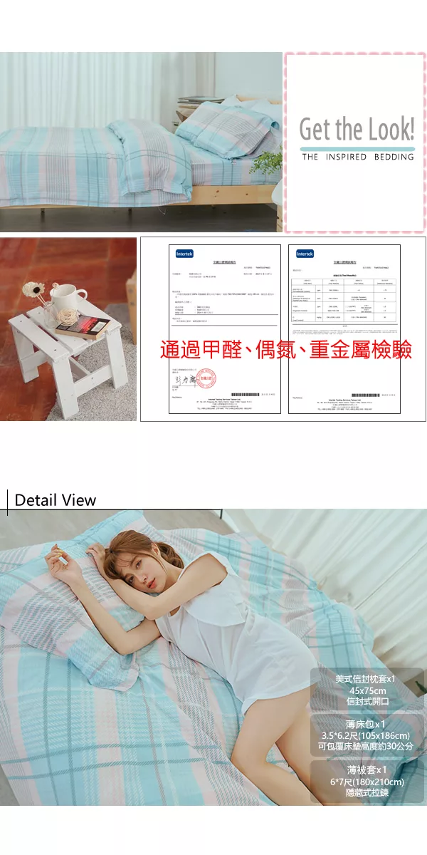 《DUYAN 竹漾》台灣製 芬蘭撞色設計-單人床包二件組- 愛麗絲藍
