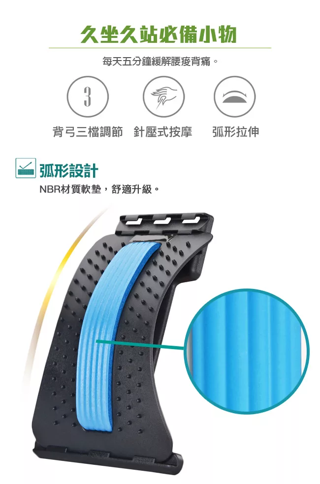 【Leader X】腰頸部伸展輔助器 按摩挺腰板(黑綠)