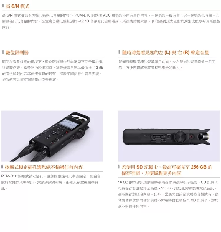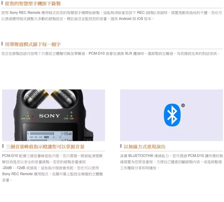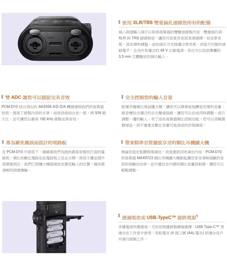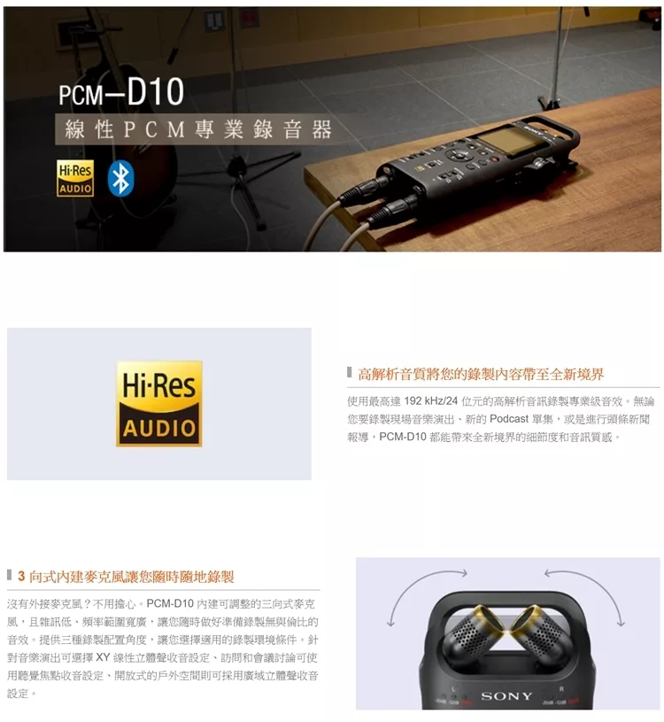SONY PCM-D10 PCM 專業錄音機,Hi-Res錄音對應,藍牙,XLR/TRS平衡式端子 台灣索尼公司貨保固一年