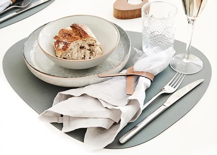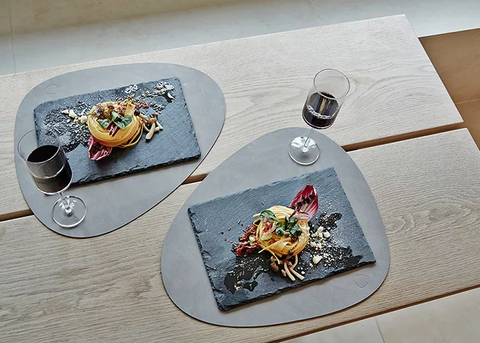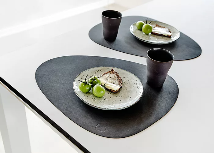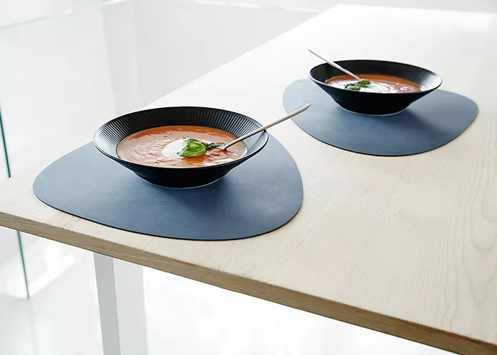 LIND DNA 桌墊外觀看似輕薄,實際觸摸卻感厚實舒服。表面的皮革紋路即具渾然天成的裝飾效果;底面磨製成細絨狀的絨面革,美觀之餘能穩固抓牢桌面不易移位。多用途的美麗桌墊,不應被侷限於餐廚空間,換個情景擺置於辦公室,抑是十分精緻實用的文房器具。