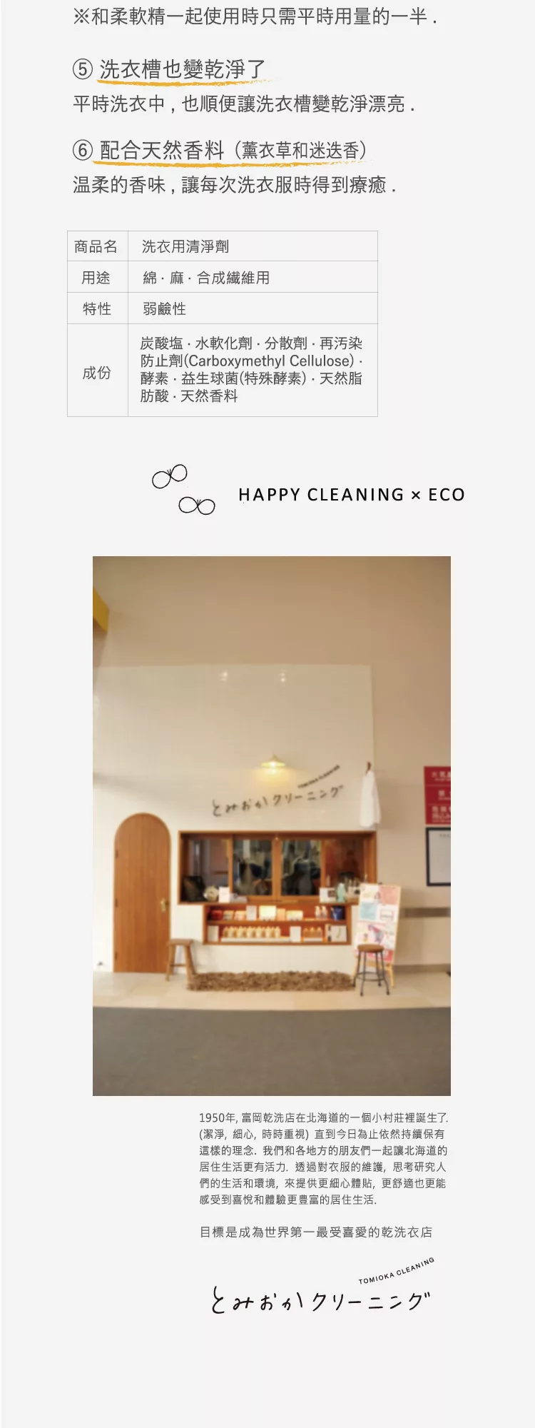長期以來,TOMIOKA CLEANING以親膚、衣物友好及友善地球而受到大家喜愛。