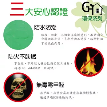 防水+防燃+無甲醛安心塑鋼材質,結構牢固耐用,也不用擔心蟲蛀的煩惱,使用放心