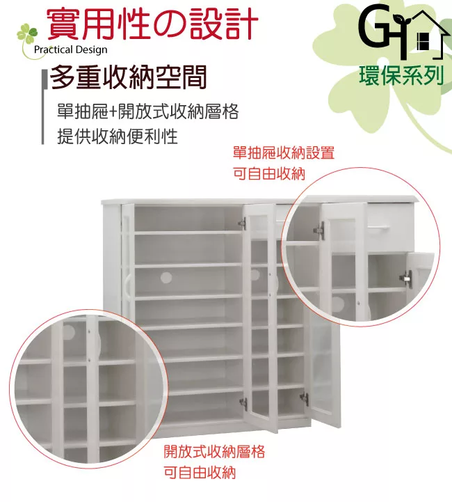 三門櫃+單抽屜+內開放多層格等收納空間設計,讓您好收納,保持空間整齊乾淨不再是夢想