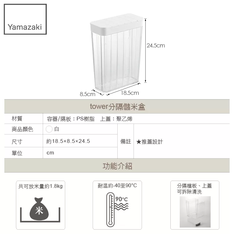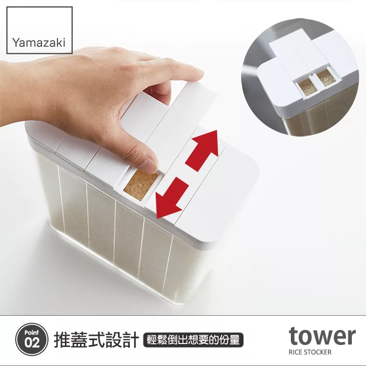 推蓋式設計,讓您輕鬆倒出想要的份量。分隔檔板及上蓋都可拆除清洗。