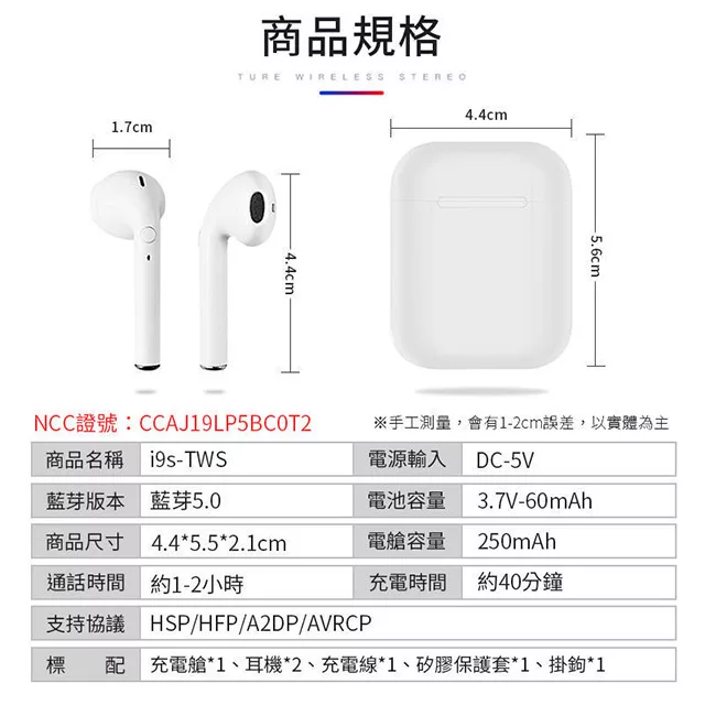 i9s-TWS 雙耳無線藍牙耳機/磁吸充電/附充電盒