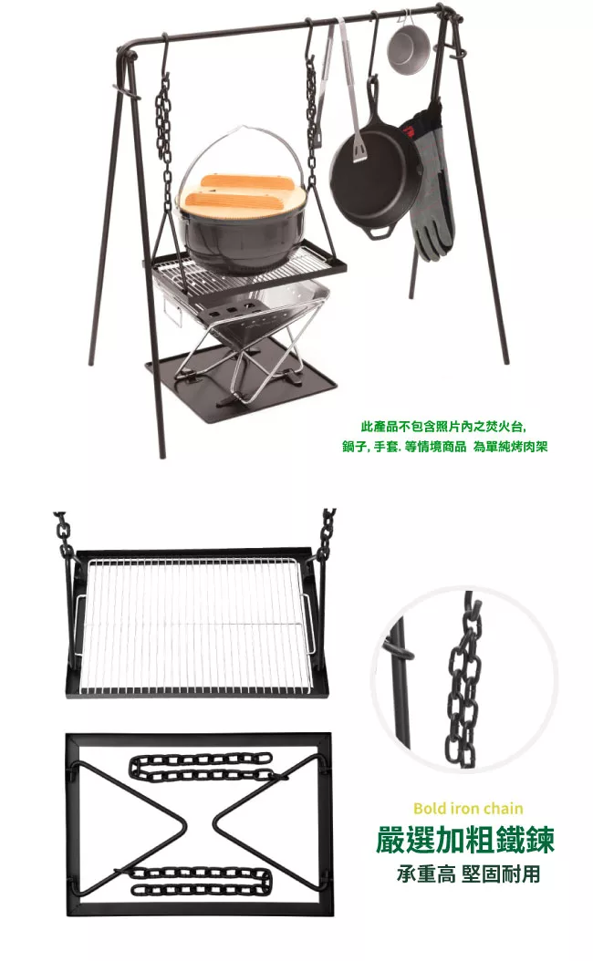 【日本CAPTAIN STAG】可折疊收納桌上型V型烤肉架 -綠色