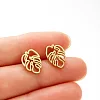 【水星記】小資女花朵動物可愛簡約鏤空不鏽鋼耳釘(20327010) _龜背芋x金色