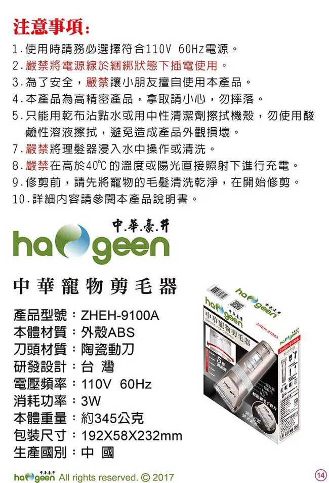 【野一夏】寵物可吸毛安全修毛器 剃毛器 剃毛機 除毛機 修剪器 理毛器 電推剪 電動剃毛 -綠色