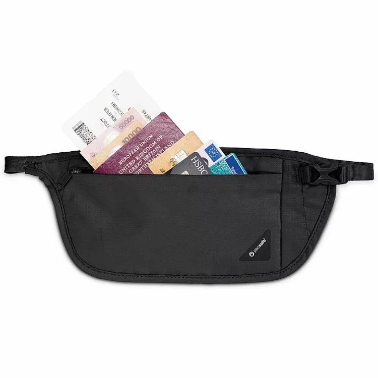《TRAVELON》雙層防盜貼身腰包 | RFID 防盜包 隨身包 貼身包 隱形包 防搶包 - 灰