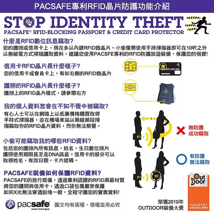 《TRAVELON》5層防盜貼身掛頸包 | RFID 防盜包 隨身包 貼身包 隱形包 防搶包 - 灰