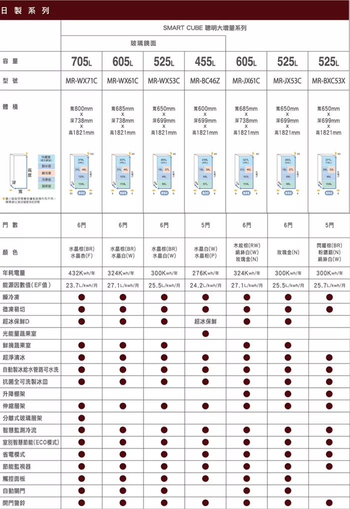 三菱607L日本原裝變頻六門電冰箱MR-WZ61K-C星沙杏