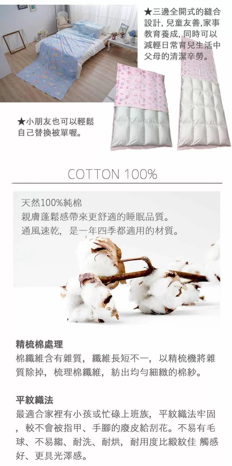 ★被單拉鍊環搭配醒目長拉繩設計,讓小朋友清楚理解從哪裡開始的引導設計。