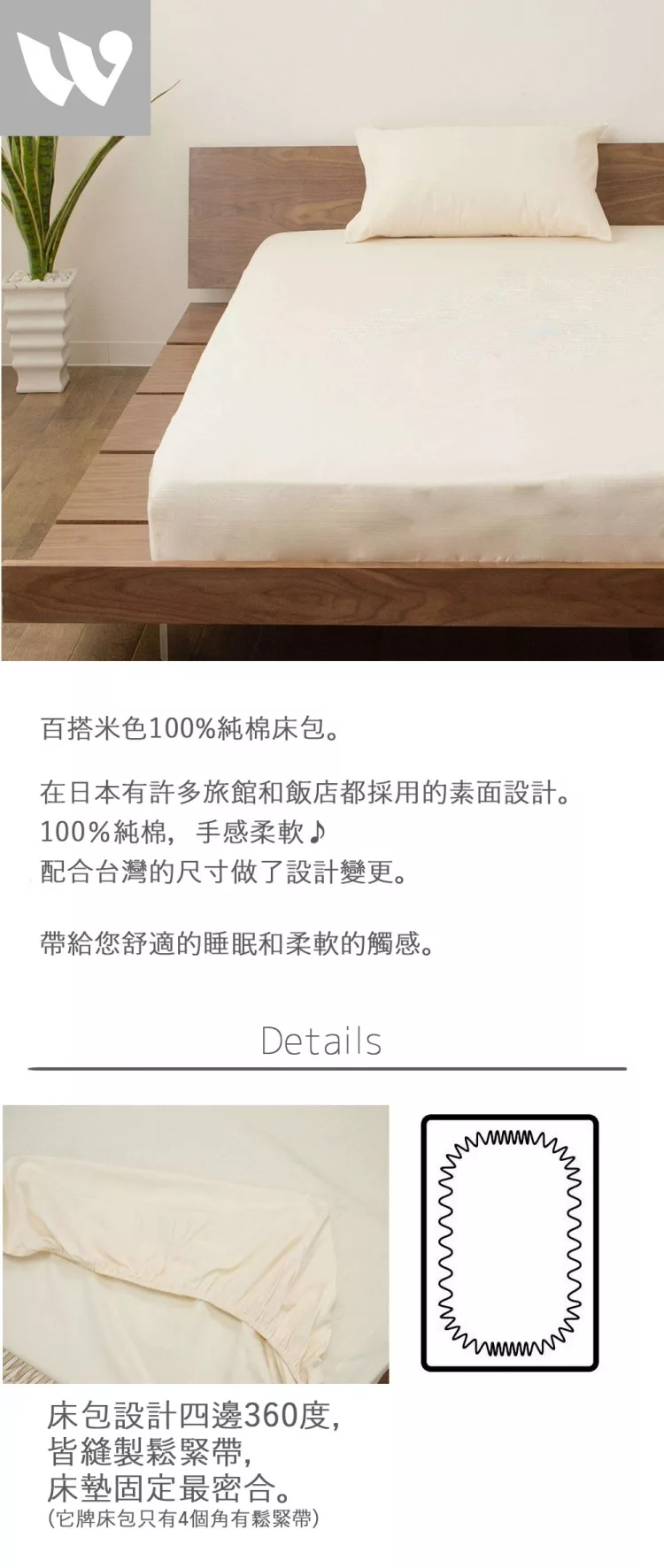 ★床包設計四邊360度皆縫製鬆緊帶, 床墊固定最密合