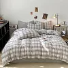《DUYAN 竹漾》台灣製 舒柔棉單人床包被套三件組 / 霧灰格影