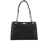 Michael Kors Whitney 銀釦縫線皮革鏈帶中型三層托特包 (黑色)