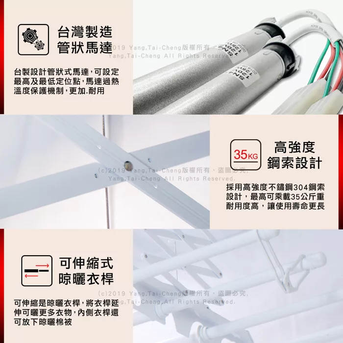 MIT台灣精品電動曬衣架,從外觀設計到內部機件組裝,都是台灣製造生產,