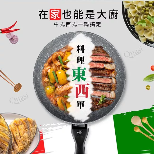 德國Fackelmann 珍珠奶白陶瓷不沾24cm雙鍋組(炒鍋+平底鍋)