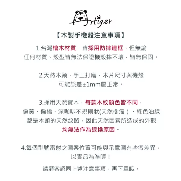 Artiger-iPhone原木雕刻手機殼-神明系列-注意事項
