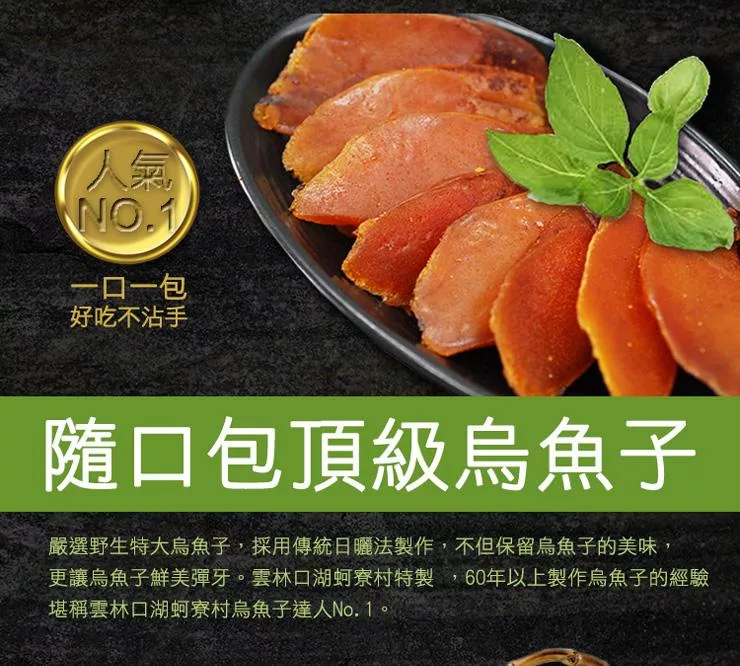 四季補 口湖烏頂級烏魚子一口吃(2兩,75g)