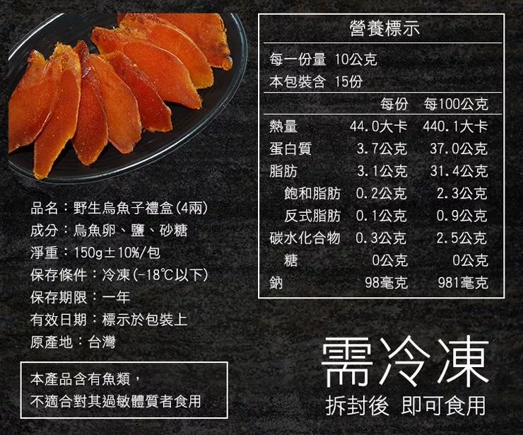【初誠良物】野生烏魚子8兩x1片禮盒(附提袋) 下單7個工作天出貨