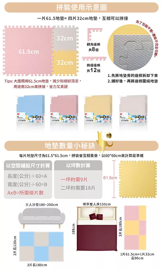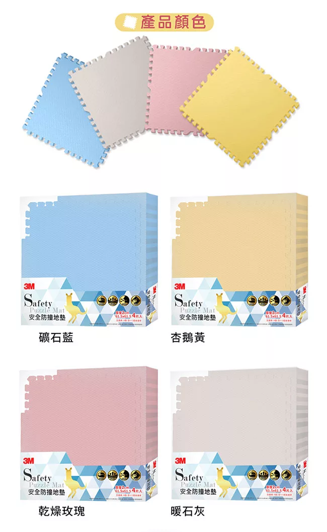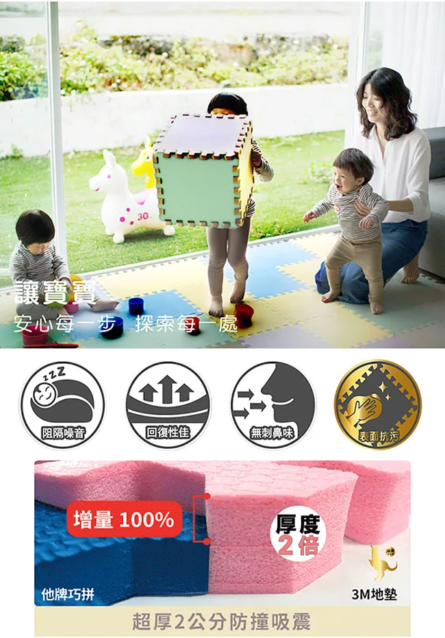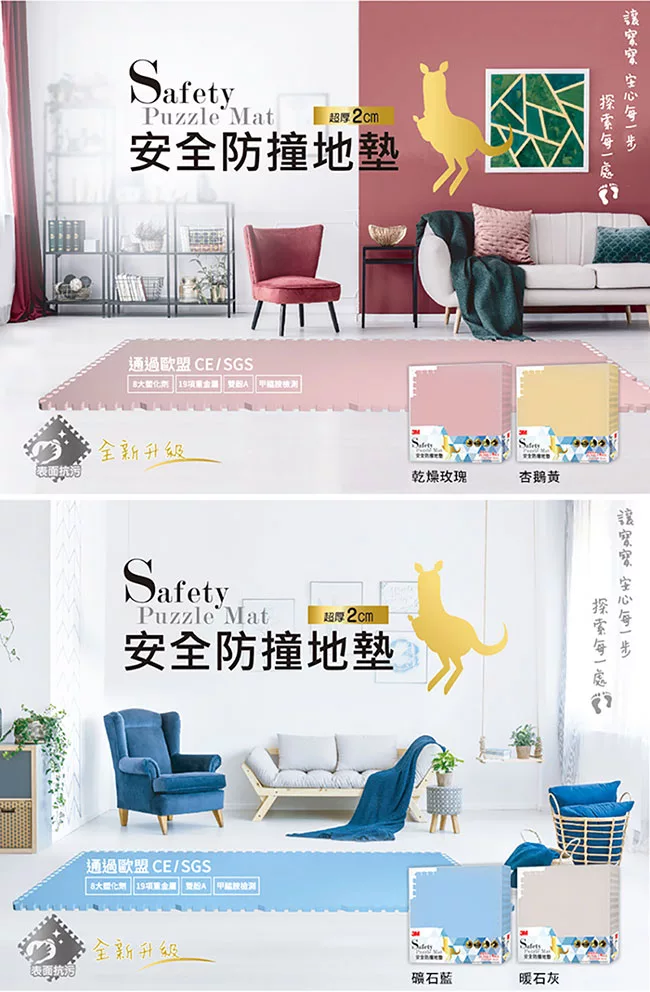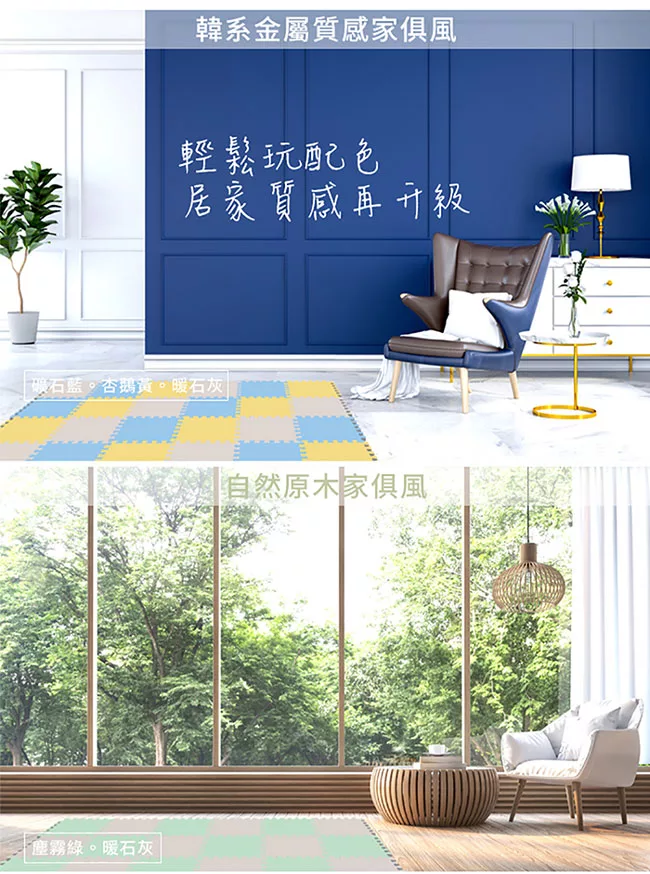 Playzu 台灣製環保無毒歐美設計幾何系列防水巧拼地墊62cm(6片組) 藍莓優格(藍)