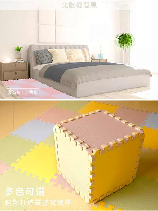Playzu 台灣製環保無毒歐美設計現代風防水巧拼地墊58cm(6片組) 薄暮之霧(灰紫)