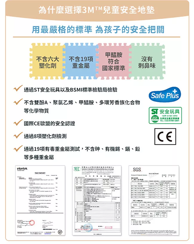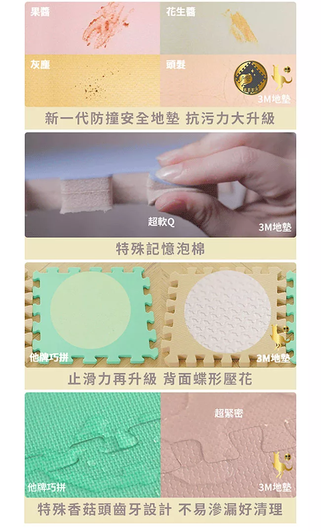 Playzu 台灣製環保無毒歐美設計幾何系列防水巧拼地墊62cm(6片組) 金箔梅飲(亞麻金)