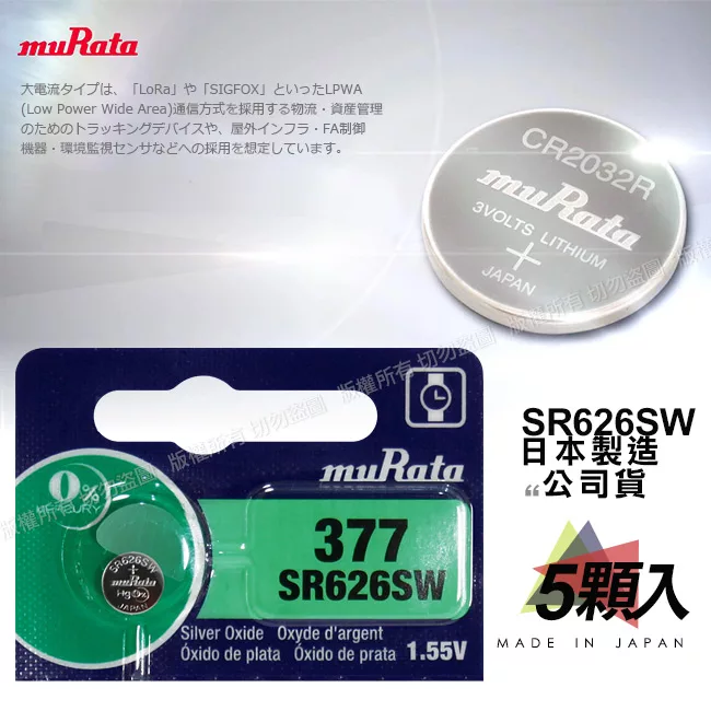 【日本製造】muRata日本村田 鈕扣型鋰電池 SR626SW (5顆入)